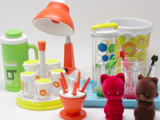 でも、こんなゴミ箱や電気スタンド、ポットにグラス...