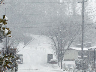 降ったり、止んだり・・・久々の雪国らしい景色。