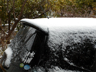 車の上が白かったので驚きましたが、日中は融けてました。