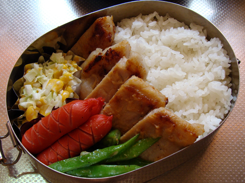 トンカツ用の豚肉に味噌(+酒・みりん)を塗って焼いただけ(^^;