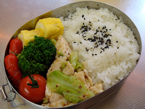 今日は鶏肉とキャベツの粒マスタード和え。