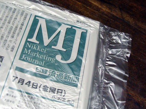 雨が降ると、包装されて配達される新聞。