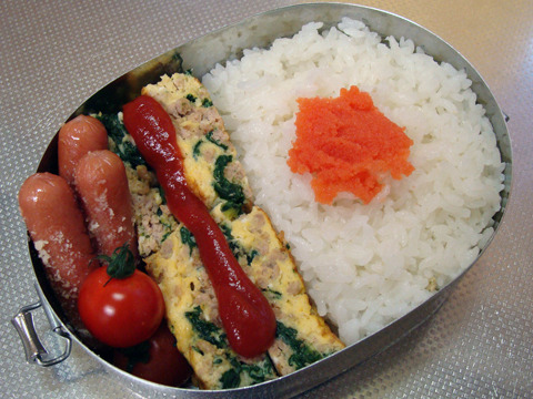 今日は、ほうれん草と挽肉入りのオムレツで(・ω・)b