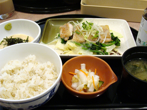 ランチは、麦とろご飯と若鶏の特製塩だれ和膳。