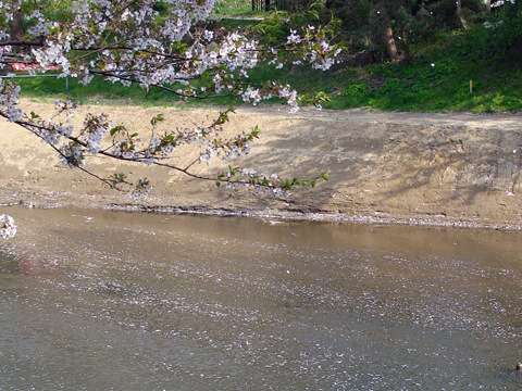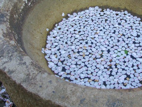 水辺に溜まる花びら…