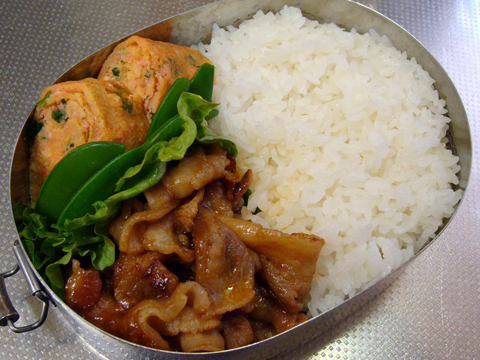 今日は、たらこ入り卵焼きと豚肉のBBQ。