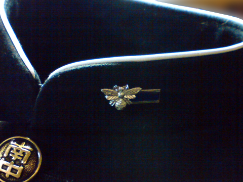虫が苦手な彼は校章がイマイチお気に召さないよう。
